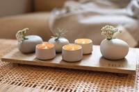 Matière: petits porte-bougies en grès teinté dans la masse, en partie émaillés. H: 3 cm, Ø 5 cm