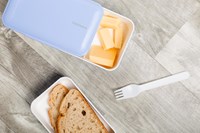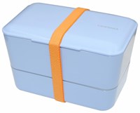 Offrant deux niveaux hermétiques, le Bento Box Double offre une variété d'options d'espace ainsi qu'une fourchette, une cloison amovible et un élastique. Utilisez deux étages ou un seul, en fonction de la quantité d'aliments que vous souhaitez emballer. Lorsque vous avez fini de manger, vous pouvez placer le plateau supérieur dans le plateau inférieur. Ainsi la boîte prendra moins de place dans votre sac. Dimensions : 174lx110Lx109H Capacité : 1150ml Matériaux: Corps et couvercle supérieur : 100 % recyclé de 8 bouteilles PET Séparateur, fourchette : polypropylène. Couvercle intérieur : Polyéthylène Sans BPA ni plomb Passe au four à micro-ondes et au lave-vaisselle (retirer le couvercle intérieur) Livré avec un élastique couleur orange à enrouler autour de la Bento Box. Livré avec une fourchette et une cloison amovible. Fabriqué au Japon