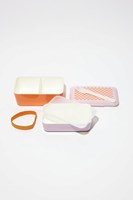 Offrant deux niveaux hermétiques, le Bento Box Double offre une variété d'options d'espace ainsi qu'une fourchette, une cloison amovible et un élastique. Utilisez deux étages ou un seul, en fonction de la quantité d'aliments que vous souhaitez emballer. Lorsque vous avez fini de manger, vous pouvez placer le plateau supérieur dans le plateau inférieur. Ainsi la boîte prendra moins de place dans votre sac. Dimensions : 174lx110Lx109H Capacité : 1150ml Matériaux: Corps et couvercle supérieur : 100 % recyclé de 8 bouteilles PET Séparateur, fourchette : polypropylène. Couvercle intérieur : Polyéthylène Sans BPA ni plomb Passe au four à micro-ondes et au lave-vaisselle (retirer le couvercle intérieur) Livré avec un élastique couleur orange à enrouler autour de la Bento Box. Livré avec une fourchette et une cloison amovible. Fabriqué au Japon