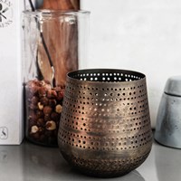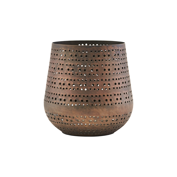 Il est temps de créer une atmosphère cosy et chaleureuse dans la maison. Perfo est un magnifique bougeoir rond avec une finition en cuivre qui apportera au décor chaleur et personnalité.Placez le bougeoir sur la table seul ou avec d'autres bougeoirs ou vases pour créer un look personnel et chaleureux. h: 16.5 cm, dia: 18.00 cm