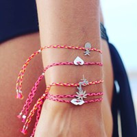 Bracelet tressé avec un Charm en argent plaqué or. S'adapte à tous les poignets. Livré dans un beau tube en verre.