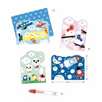 On remplit le stylo avec de l'eau. L'enfant colorie pour faire apparaître les surprises. Quand c'est sec, il recommence à l'infini! 4 dessins, 1 stylo