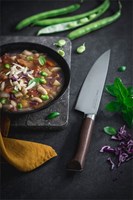 Conçu pour émincer, hacher, couper en lamelles ou encore aplatir des ingrédients, vous ne pourrez plus vous passer de ce couteau polyvalent dont le profil du manche a été développé afin de limiter la fatigue tout en guidant bien la lame. Longeur lame: 20cm. En acier X50CrMoV15 qui est un acier inoxydable qui présente une haute résistance à la corrosion et permet une haute qualité de coupe.