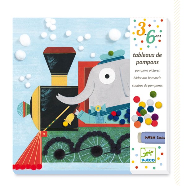 Tableaux avec pompons à coller. Activité de manipulation qui développe la dextérité. Accessoires et 1 tube de colle inclus.