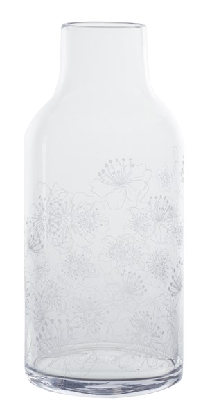 Vase en verre transparenr avec imprimé fleurs. H:30cm dia:13,5cm