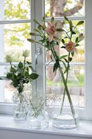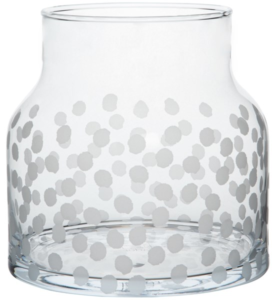 Vase en verre transparenr avec imprimé pois. H:18cm dia:18cm