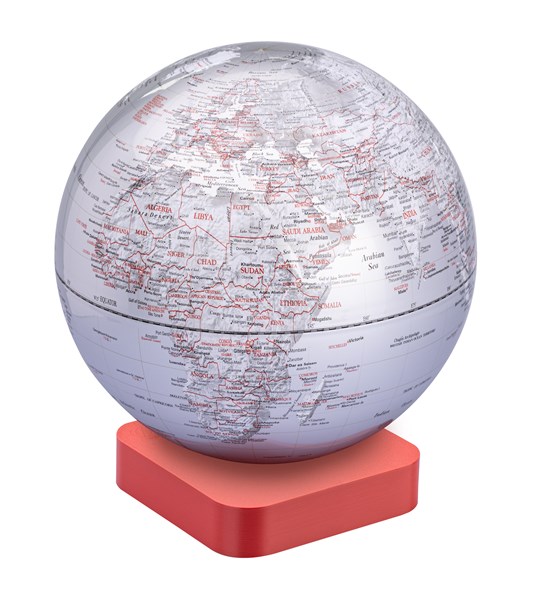 Globe de 30 cm de diamètre, pied magnétique gris en matériau recyclé, impression 3D, plastique, mat
