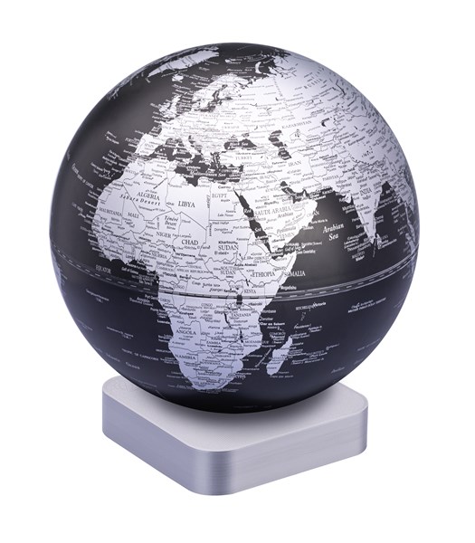 Globe de 30 cm de diamètre, pied magnétique gris en matériau recyclé, impression 3D, plastique, mat