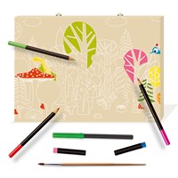 Cette riche mallette renferme un matériel de qualité Beaux-Arts et propose aux artistes en herbe de s’initier à différentes techniques : pastels, dessins, gouaches... tout y est. L’extérieur du coffret est orné d’une frise à colorier pour le personnaliser.