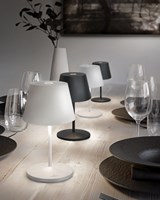 Les lampes de table, à intensité variable, de la série SEOUL, seules ou combinées, apportent beaucoup de convivialité sur toutes les tables. Convient pour l'intérieur et l'extérieur ! Grâce à la classe de protection IP65, cette petite lampe est polyvalente en toute occasion. Le variateur tactile intégré et réglable sur le dessus de la lampe permet de changer facilement l'intensité de la lumière et les températures de couleur. Après une durée de fonctionnement qui peut aller jusqu'à 24 heures, la lampe SEOUL se recharge facilement grâce à sa station de charge. Aluminium Blanc, alimenté par batterie, station de charge inclus, dimmable, 2 couleurs de lumière, 2,2W LED. Ø11cm H:20cm