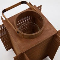 Cette lanterne est une pièce remarquable. House Doctor a conçu Asi en utilisant des morceaux de bambou qui donnent à la lanterne un design intéressants. Bambou fixé sur un cadre en bois avec vase en verre à l'intérieur pour votre bougie. Même si elle est de couleur sombre, la lanterne illumine votre espace et fournit une lumière douce qui brille à travers le bambou. Placez-le à côté de votre lit, dans le couloir ou sur le rebord de la fenêtre de votre salon pour créer une atmosphère chaleureuse. h: 46 cm, dia: 24 cm