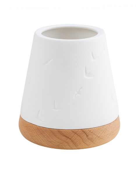 Matière porcelaine, gaufrée et non émaillée, avec fond en bois huilé (chêne)