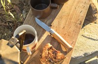 Le veinage unique du bois de l'olivier transporte notre couteau savoyard en Méditerranée. Un classique pour les amoureux de ce bois au caractère affirmé.