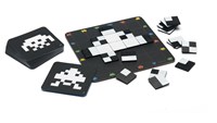 Le joueur choisit une carte « défi » sur laquelle il trouvera l’image d’un extraterrestre à reproduire en utilisant les différentes pièces en bois. Pas si simple, les pièces sont de tailles identiques mais les impressions sont différentes.