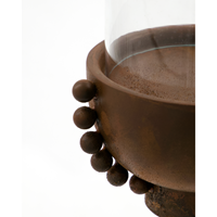 Ce bougeoir en fer rouillé et en verre transparent donne de la chaleur et du caractère à chaque pièce. Cette pièce faite à la main attire l'attention et donne une touche de personnalité à votre intérieur.