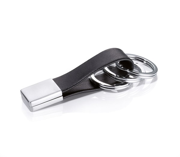 Porte-clés avec fermeture "twist" anguleux, boucle en cuir, 3 anneaux pour clésnoire.
