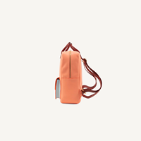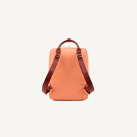 Le sac est fabriqué à partir d'un cuir végétalien de haute qualité et il a un rabat en daim véritable sur le devant. La doublure est faite d'une toile rayée cool et chic et les fermetures éclair dorées sont de YKK. Le sac à dos dispose d'un compartiment rembourré pour ordinateur portable à l'intérieur.