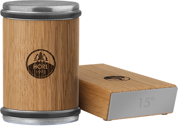 Contenu de la boîte: un aiguiseur HORL® 2 et un support magnétique en noyer HORL® 2 HORL