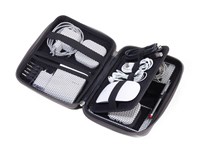 Etui organiseur avec fermeture éclair, 3 compartiments intérieurs, 6 passants pour élastiques, séparateur (intérieur), similicuir, velours, gris/noir