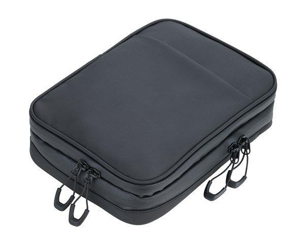 Sac pour câbles avec 2 compartiments zippés, 2 compartiments intérieurs avec poches en filet et bandes élastiques pour accessoires (Every Day Carry), boucle pour stylo, 1 compartiment extérieur, 100% polyester, boucle pour fixation au trolley, Tarpaulin (bâche), noir.