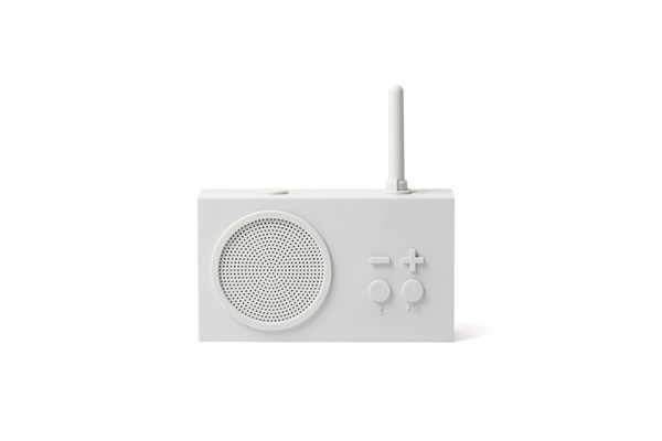De nombreuses fois primée pour son design, la radio iconique au look rétro se modernise! Tout en conservant sa fonctionnalité radio FM, Tykho est désormais équipée d’une enceinte Bluetooth® 3W pour continuer à être un objet essentiel du quotidien. Ecoutez la radio en appuyant simplement sur le bouton FM et tournez l’antenne pour régler la fréquence sur votre station préférée. Si vous préférez écouter vos playlists, appuyez sur le bouton Bluetooth® et connectez votre appareil. Grâce à son revêtement en silicone résistant aux éclaboussures, Tykho 3 est le compagnon idéal pour écouter de la musique tout en se prélassant au bord de la piscine, en faisant la vaisselle ou en se préparant dans la salle de bain. Profitez de jusqu’à 20 heures d’autonomie. Tykho 3 est facilement rechargeable via le câble micro-USB fourni. Radio FM & Enceinte Bluetooth® 3W Résiste aux projections d’eau Plage de fréquence : FM 88-108MHz Portée Bluetooth® : 10 m Autonomie : 20h Temps de charge : 4h Rechargeable sur port Micro-USB (câble inclus) Matière : Gomme siliconée Marquage conseillé : sérigraphie encre siliconée – laser Dimensions : 14 x 4,5 x 8,1 cm P. Brut : 388 g